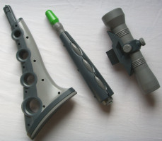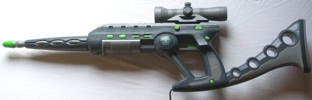 Das Sniper Scope von Titan Concepts ist nämlich perfekt auf die Bedürfnisse von Xbox Schützen ausgelegt! Ihr könnt die Waffe entweder als Shotgun nutzen (siehe Abbildung oben), oder aber zu einem gigantischen Scharfschützengewehr zusammenbasteln (siehe Abbildung unten). Wer die Xbox Tests noch nicht gelesen hat, dem sei gesagt: in House of the Dead 3 ballert ihr mit einer Schrotflinte, in Silent Scope Complete mit einer Präzisionswaffe. Da diese beiden Titel die einzigen lohnenswerten Spiele für Microsofts Konsole sind, braucht ihr im Grunde keine anderen Lightgun als diese hier! Das Sniper Scope bietet euch neben der Möglichkeit eines Komplettumbaus auch noch das übliche an Extras: Auto-Feuer und Auto-Reload machen jedoch bei den beiden XBox Titeln kaum Sinn und auch der Rückschlag ist mal wieder vollkommen überflüssig! ![]() Diese drei Dinge könnt ihr an die Waffe bauen: Schulterstütze, Laufverlängerung und Zieloptik Der Abzug ist sehr angenehm eingestellt, das funktionale 'Klicken' fehlt auch hier nicht. Benutzt ihr die Waffe als Shotgun, so könnt ihr über den Griff vorne am Lauf via Pump Action Reload manuell nachladen. Die Schulterstütze hätte etwas länger sein dürfen, dann hätte man sich mehr hinter die Waffe klemmen können. Dafür wurde an dem Kabel nicht gespart, mehr als 3 Meter warten darauf von euch verlegt zu werden! Solltet ihr sie aber in größerem Abstand nutzen, leidet die ansonsten gute Präzision etwas darunter. Neben allen nötigen Buttons findet ihr an der Waffe als zusätzliche Ausstattung einen Slot für Memory Cards oder sonstige Zusätze. Nicht unerwähnt soll auch die Kompatibilität mit 100Hz Fernsehern bleiben, die ich aber nicht überprüfen konnte. Alles in allem ist das Sniper Scope ein geniales Teil, egal ob man sie nun als Pump Action oder als Sniper Rifle benutzt. Die beiden wichtigen Xbox Spiele sind damit einfach super zu spielen! Leider ist das Ding nicht ganz leicht zu bekommen, für Fans des Genres aber auf jeden Fall ein Muss, nicht zuletzt aufgrund seiner Einzigartigkeit! Das gute Stück gibt es auch für die PS2, doch auf dieser Plattform fehlen die richtigen Spiele dafür. ![]() Für Silent Scope baut man die Lightgun komplett zusammen, sie misst dann gute 90cm vom Anfang bis zum Ende!