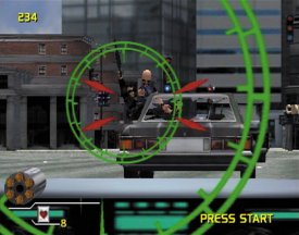 Nr.1 ist identisch mit dem Trainingsgelände aus Virtua Cop. Hierbei gilt es einfach auf acht verschiedenen Trainingsplätzen, möglichst viele Scheiben abzuschießen. Habt ihr das gut gemeistert oder genug davon euch immer wieder selbst zu übertrumpfen, so könnt ihr auch in einem Wettbewerb mit einem Computergegner antreten. In dieser Variante Nr.2 zielt ihr wieder auf Scheiben, nur müsst ihr diese diesmal mit eurem Kontrahenten teilen. Zur Treffsicherheit gehört hier auch noch mal eine gehörige Portion Schnelligkeit, um als Sieger vom Feld zu gehen. Beides ist ganz nett, macht zu zweit mit einem menschlichen Mitspieler aber noch mehr Fun. Mit einem Kumpel an eurer Seite dürft ihr natürlich auch das eigentliche Spiel bestreiten. Dann geht ihr gemeinsam auf Streife, so wie in den Originalen. Noch ein paar Anmerkungen zur Steuerung: Ihr zielt wie gewohnt vom Bildschirm weg und drückt ab, wenn ihr nachladen wollt. Haltet ihr aber eine G-Con 2 in den Händen, könnt ihr den C-Button (am Magazineinschub) für diese Aktion verwenden.